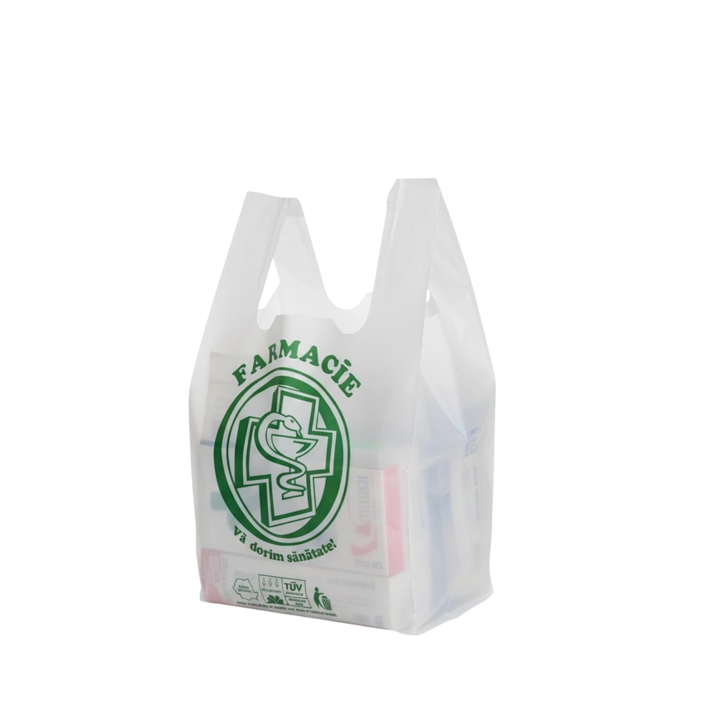 Comanda acum pungile biodegradabile tip maieu pentru farmacia ta, in cantitati mici de 100 bucati!